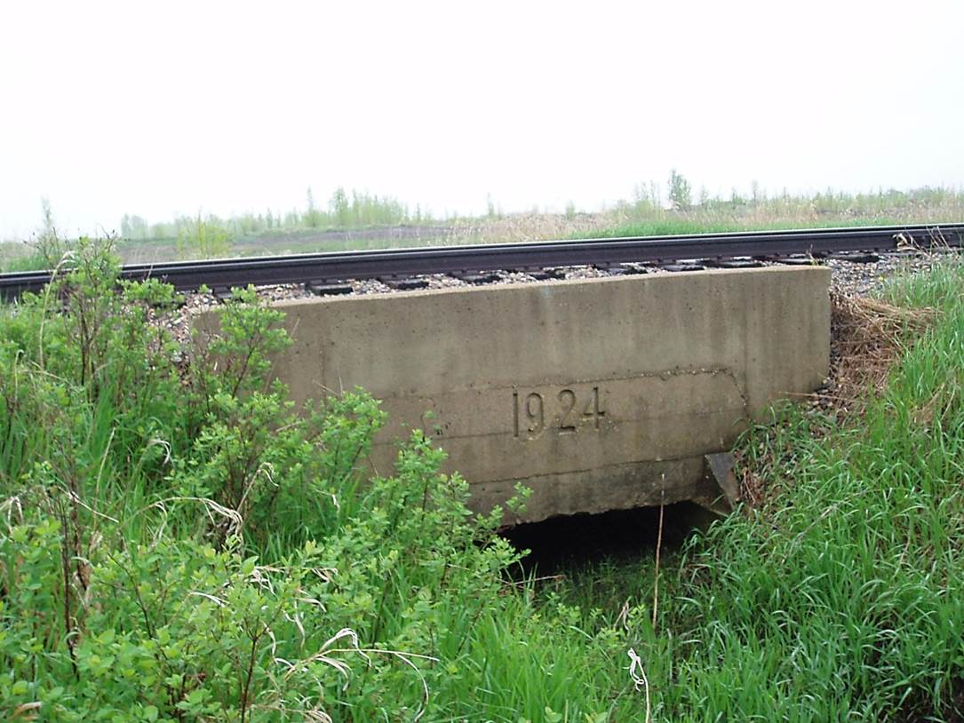 2011/05, Mile 83, Concrete bridge (1924). Notice added concrete abutment for additional rail bed height done at a later date. (Click on photo for enlargement) Photo – N.F. © Text and Photos exclusive copyright of N. Froese, Author.