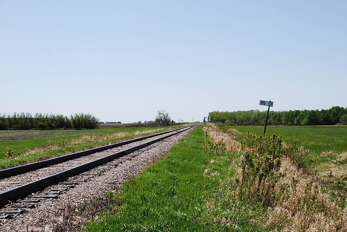2012/05, BTRC/former CPR mile 85 looking W., one mile E. of Thornhill, MB. (Click on photo for enlargement) © Text and Photos exclusive copyright of N. Froese, Author.