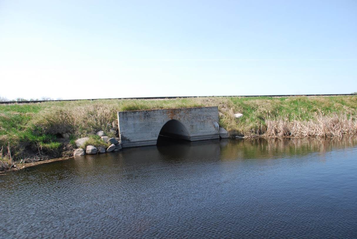 2012/05, BTRC/former CPR mile 89. View – looking S.W. at concrete culvert in track bed. Photo – N.F. (Click on photo for enlargement) © Text and Photos exclusive copyright of N. Froese, Author.