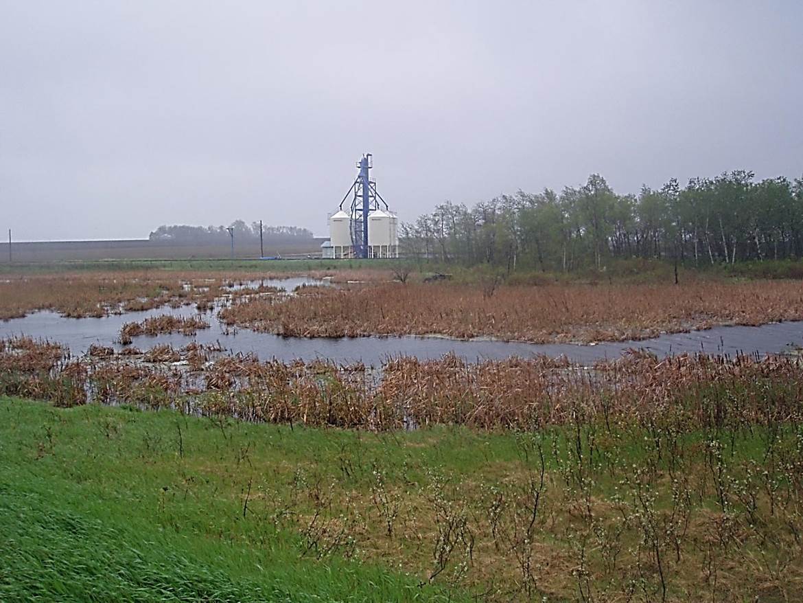2011/05 BTRC mile 103 looking S.W. across the marsh at the BTRC trackside loading facility at Binney Corners. Photo – N.F. (Click on photo for enlargement) © Text and Photos exclusive copyright of N. Froese,