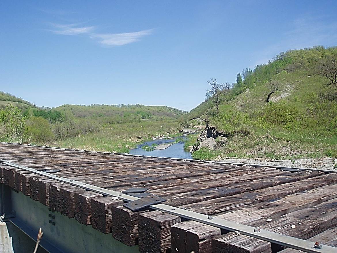 2011/05, BTRC/former CPR mile 109.5 trestle deck level view to the N.E. Notice loose rubber pads lying on deck from the track salvage. (Click on Photo for enlargement) © Text and Photos exclusive copyright of N. Froese,