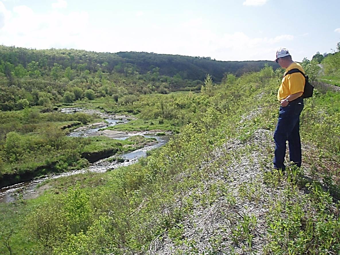 2011/05, CPR/ Napinka Sub. Mile 3. Picturesque McCoy’s Creek valley. R. Froese looking S. and down from track bed. (Click on photo for detail) © Text and Photos exclusive copyright of N. Froese.