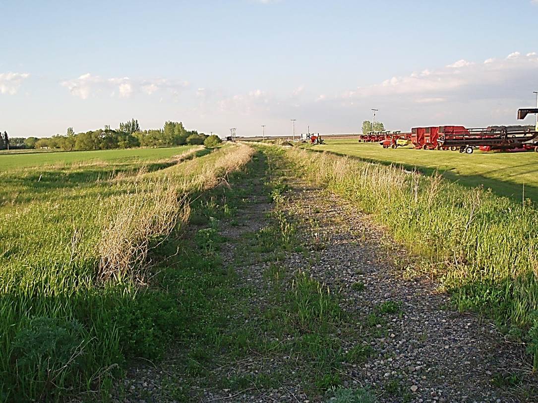2011/05, CPR Napinka Sub. Mile 16 E. of Crystal City. View – looking N.E. at rail bed with virtually all ballast removed. (Click on photo for detail) © Text and Photos exclusive copyright of N. Froese.