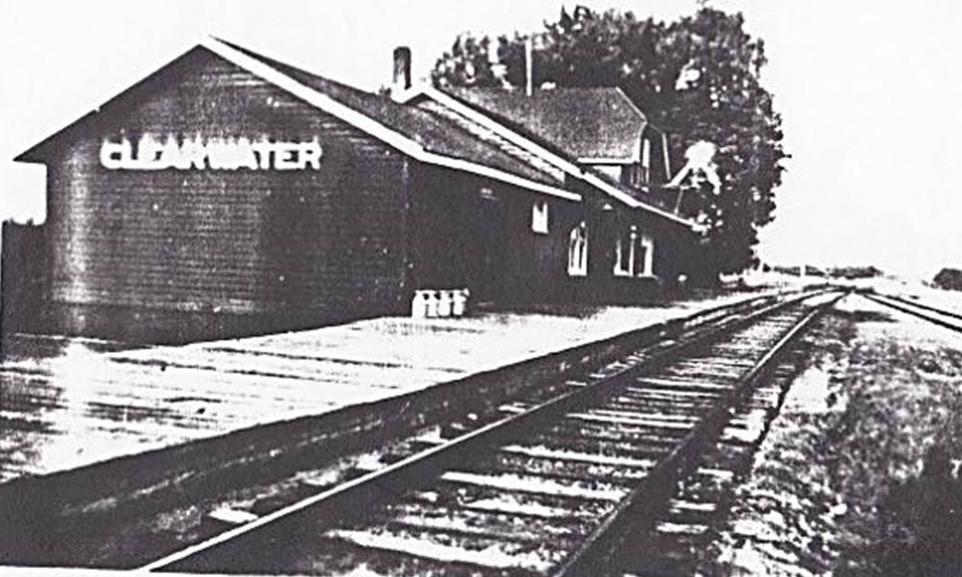 1950’s, CPR Napinka Sub. Mile 21. Actual photo of Clearwater “Type 2” Station similar to the station at Cartwright. View – facing E. towards the bridge over Long River. This photo indicates the switch location E. of the station with the main track on the left and a siding going off to the right. Would this have been the wye track which was formerly located at Clearwater? Photo credit – __________