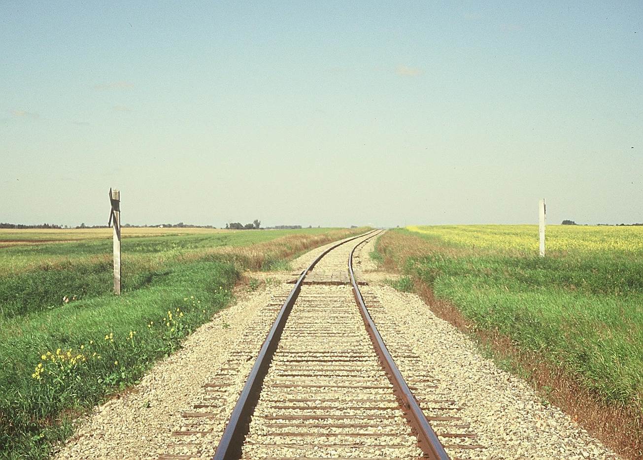 1994/08, CPR/Napinka Sub. Mile 29 W. of Mather. View- looking W. (Click on photo for larger image) Photo taken with a Minolta telephoto 70 – 210 mm zoom lens. © Text and Photos exclusive copyright of N. Froese, Author.