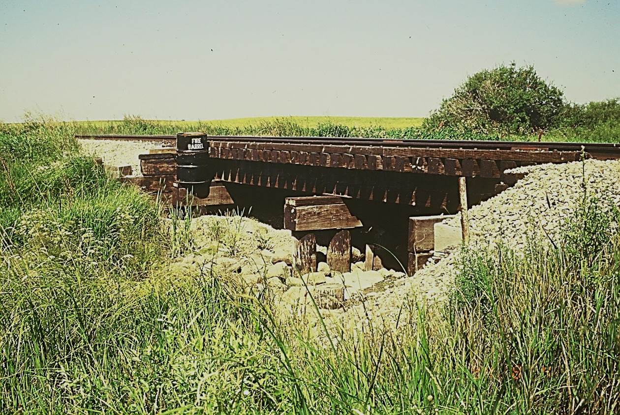 1994/08, CPR/Napinka Sub. Bridge at mile 32.4. South side view looking N.W. Notice the fire barrel still on this bridge. (Click on photo for larger image) © Information and photos exclusive copyright of N. Froese, Author.