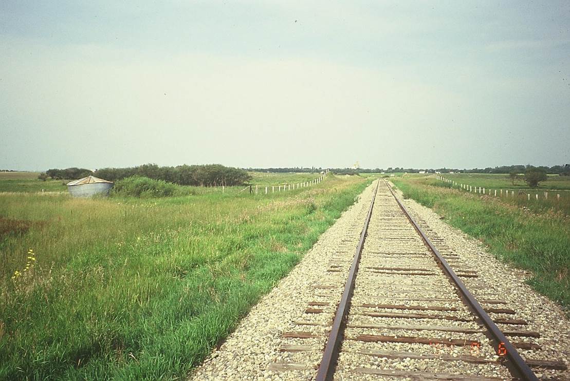 1994/08/06, CPR/Napinka Sub. Mile 33. View – looking W. towards Cartwright. (Click on photo for larger image) Photo taken with a Minolta telephoto 70 – 210 mm zoom lens. © Text and Photos exclusive copyright of N. Froese, Author.