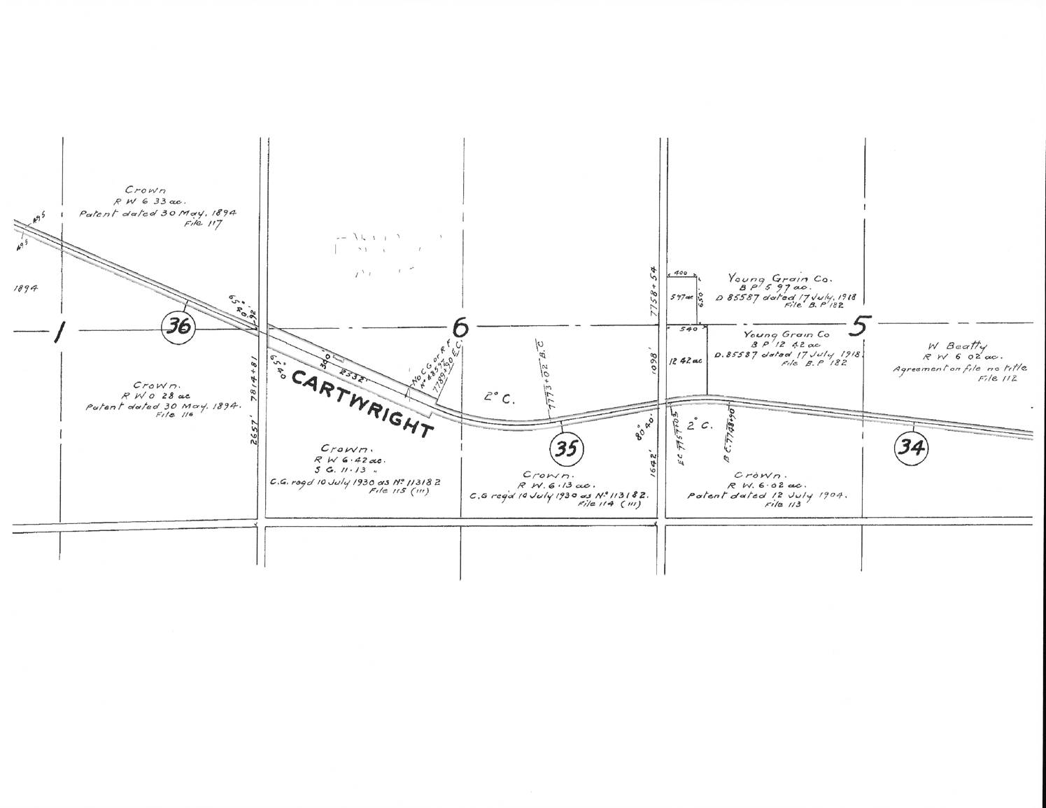 457 The Napinka Subdivision, Mile 0 to Mile 49 Leave a reply Mile 35, CPR/Napinka Sub. Miles 34, 35, and 36. Map of Cartwright showing dimensions of rail yard. Information – BTRC/CPR files. Click on map for detail. Rate this:Share this: Click to share on X (Opens in new window) X Click to share on Facebook (Opens in new window) Facebook More Click to email a link to a friend (Opens in new window) Email Click to share on LinkedIn (Opens in new window) LinkedIn Like Loading...