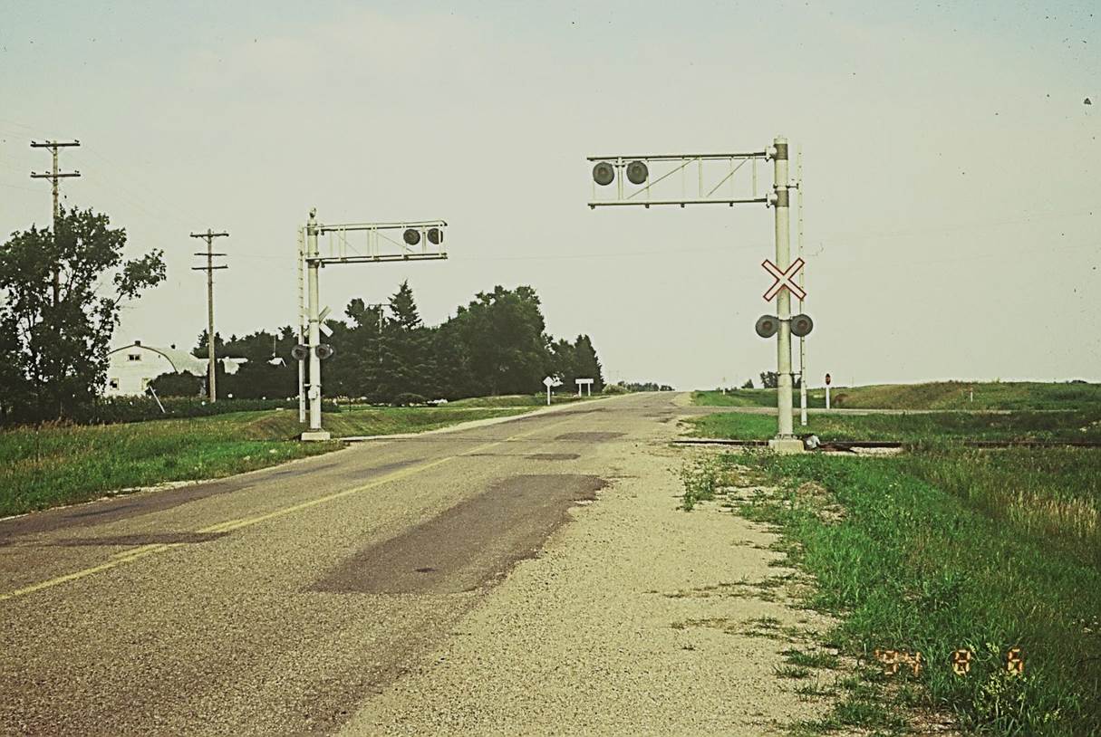 1994/08, CPR/Napinka Sub. Mile 35. Provincial Highway No. 5, heading N. past the W. end of Cartwright. CPR crossing signals. Click on photo for detail. © Text and Photos exclusive copyright of N. Froese.