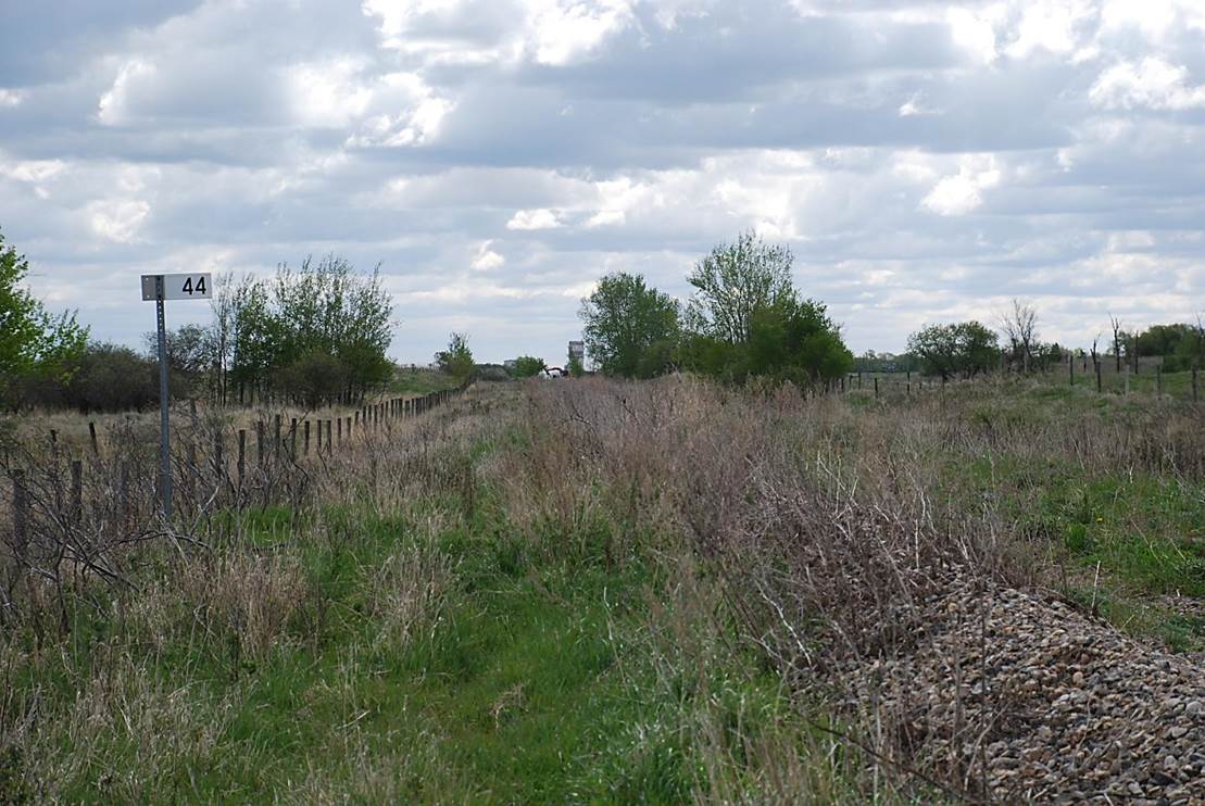 2012/05, CPR/Napinka Sub. Mile 44 W. of Holmfield, MB. Holmfield Elevator in the distance. View – looking S.E. Click on photo for detail. © Text and Photos exclusive copyright of N. Froese.